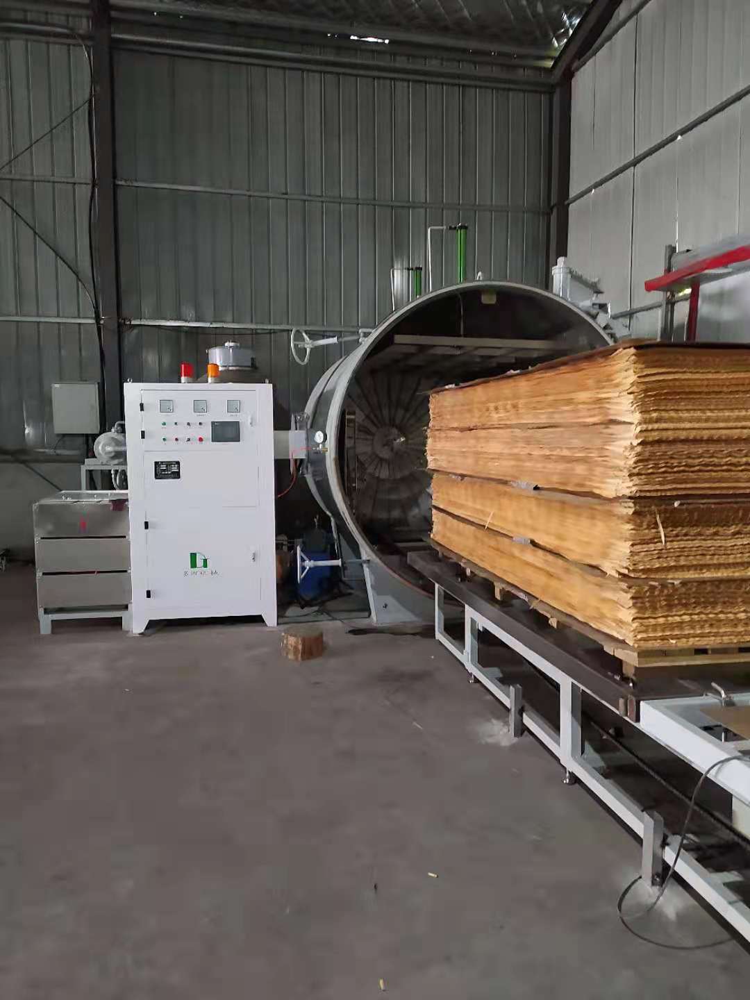 3、干燥機頂部裝有液壓系統,對干燥材堆施加壓力,同時防止木材變形。